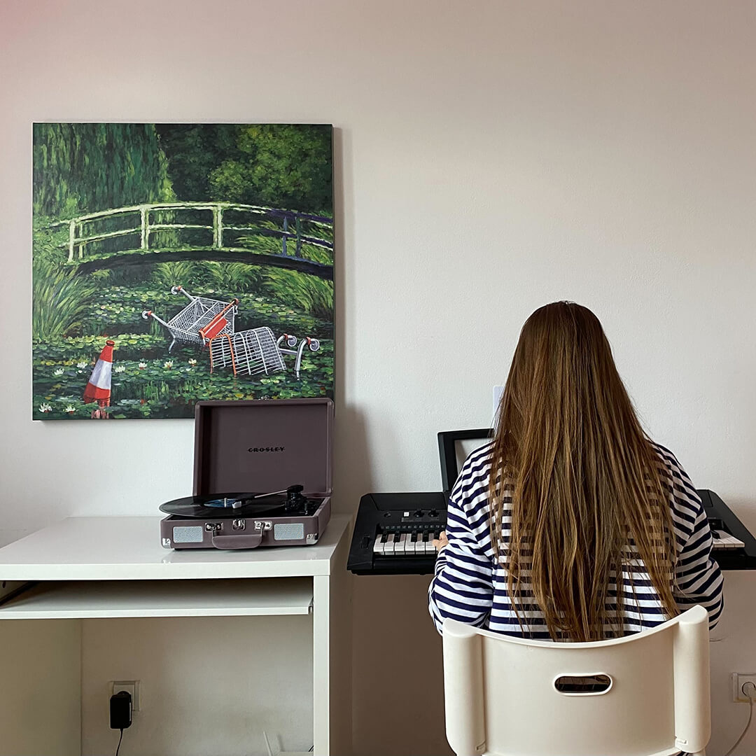 Na ručne maľovanej akrylovej maľbe 'Banksy's Monet' je cítiť každý ťah štetcom, takže vysoká kvalita diela je zrejmá na prvý pohľad. Vybrané diela sú podpísané umelcami.