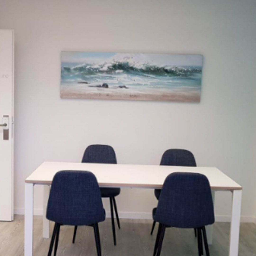 Das handgemalte Gemälde 'Vamos a la Playa' zeigt eine schäumende Welle, die den Strand überflutet. Beim Anblick des blau-weißen Wassers hören Ihre Gäste das Rauschen des Ozeans förmlich und können in Ihrem Hotel entspannen. Die großzügig aufgetragenen Acrylfarben zieren Glitter und aufgeklebte Steine aus Kunststoff, die die Lebendigkeit des Bilds intensivieren. Ihr handgemaltes Gemälde erhalten Sie in der Größe 150x50cm. Anders als bei minderwertigen Drucken auf Leinwand können Sie auf unseren Unikaten jeden Pinselstrich fühlen. 0 Canvas pictures 1 Acrylgemälde Handmade Quality 2 2 0