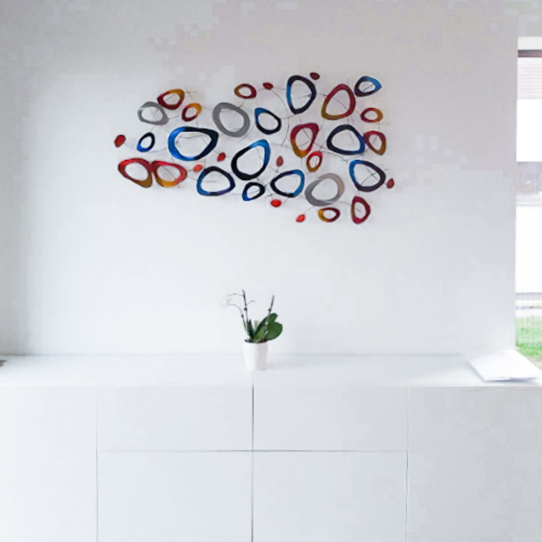 Naše kovové dekorácie na stenu sú vyrobené z kvalitných a zdravotne nezávadných materiálov v profesionálnej kvalite. Na zadnej strane nájdete očká, ktoré umožňujú vertikálne, horizontálne alebo diagonálne zavesenie.