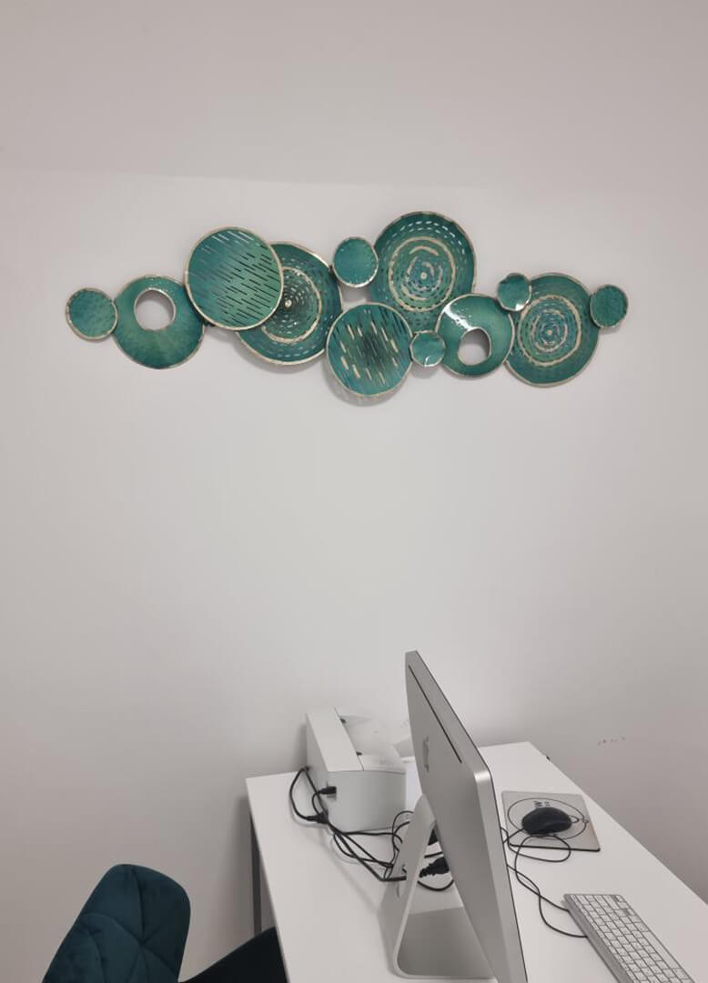 Naše kovové dekorácie na stenu sú vyrobené z kvalitných a zdravotne nezávadných materiálov v profesionálnej kvalite. Na zadnej strane nájdete očká, ktoré umožňujú vertikálne, horizontálne alebo diagonálne zavesenie.