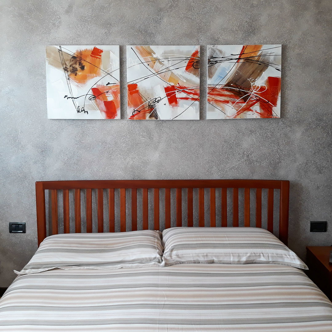 Tento 'Triple in Red' je viac než len obyčajný akrylový obraz - obraz nielen skrášli váš domov, ale aj vo vás vyvolá povzbudzujúcu náladu. Červenkastá paleta farieb abstraktných tvarov na svetlom pozadí vyvoláva aktivizujúce impulzy a vyžaruje čistú dynamiku. Ak vám niekedy v kancelárii alebo pracovni chýba drive, pri pohľade na tento ručne maľovaný tryptichon sa vám vráti. S týmto pútačom na oči nakazíte svojich zákazníkov svojou životnou energiou!